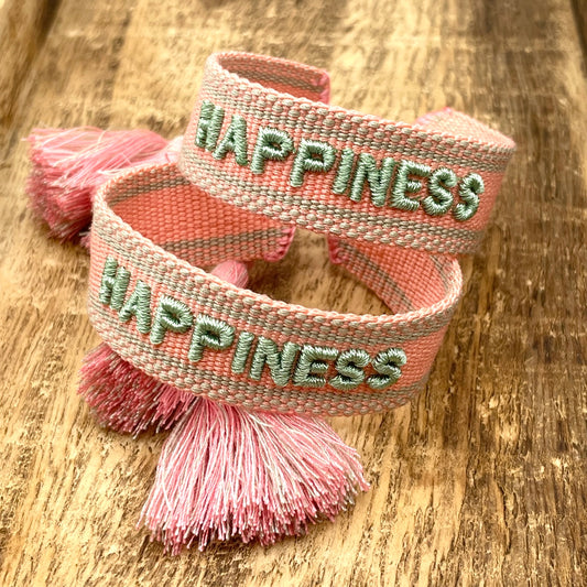 Happiness Statement Bracelet Woven, Embroidered