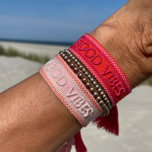 Good Vibes Statement Bracelet Woven, Embroidered, Rosy Peach