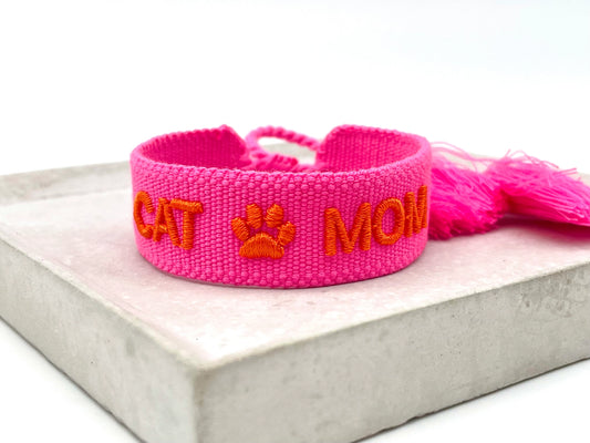 Cat Mom Statement Bracelet Woven, Embroidered