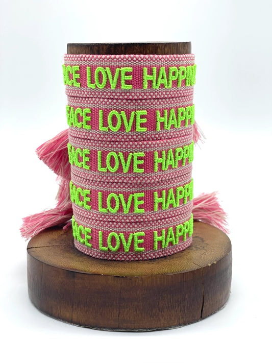 Peace Love Happiness Statement Bracelet Woven, Embroidered