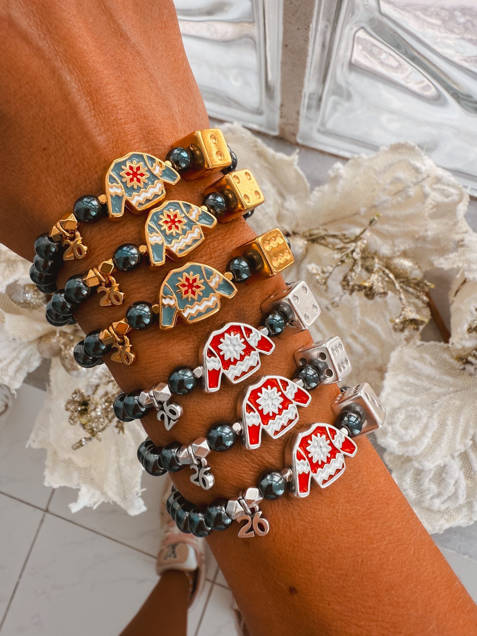 2026 silver and gold lucky sweater and dice