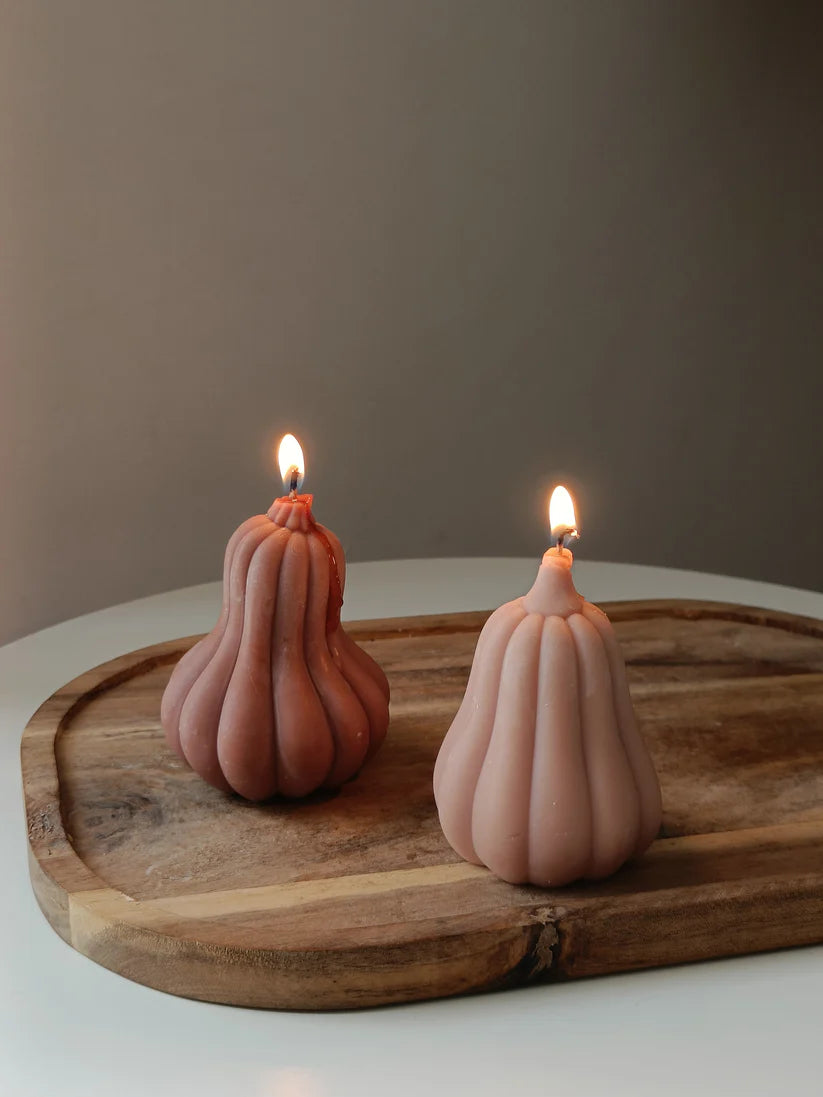 100% χειροποίητα κεριά σόγιας με βαμβακερό φυτίλι σε σχήμα κολοκύθας, διαθέσιμα σε 2 παστέλ φθινοπωρινές αποχρώσεις και σχέδια.
